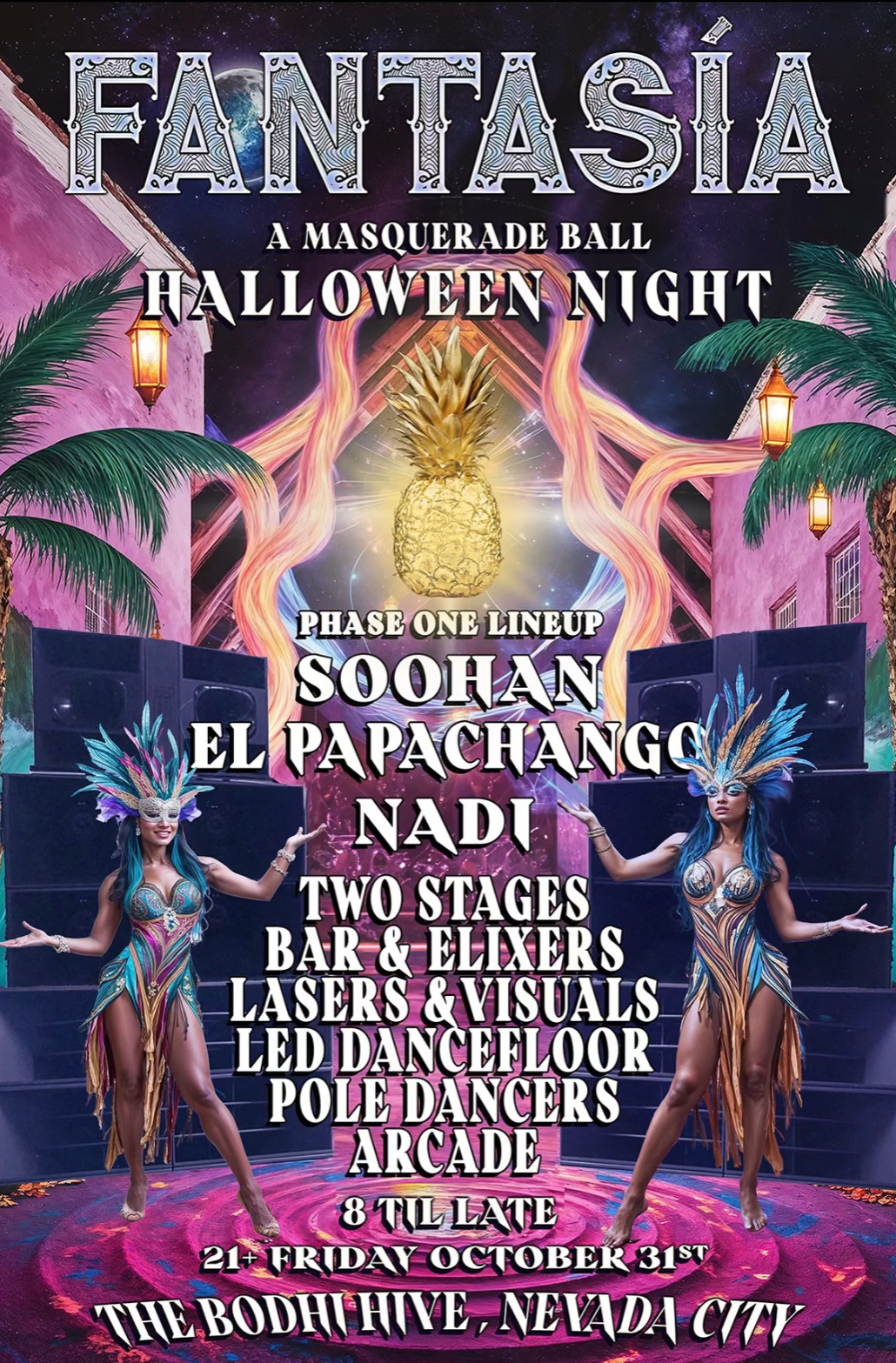 Fantasia 2025 - Electropical Friday, October 31, 2025 8:00 PM Saturday, November 1, 2025 2:00 AM The Bodhi-Hive 420 Providence Mine Road Nevada City, CA, 95959 United States (map) Google Calendar ICS